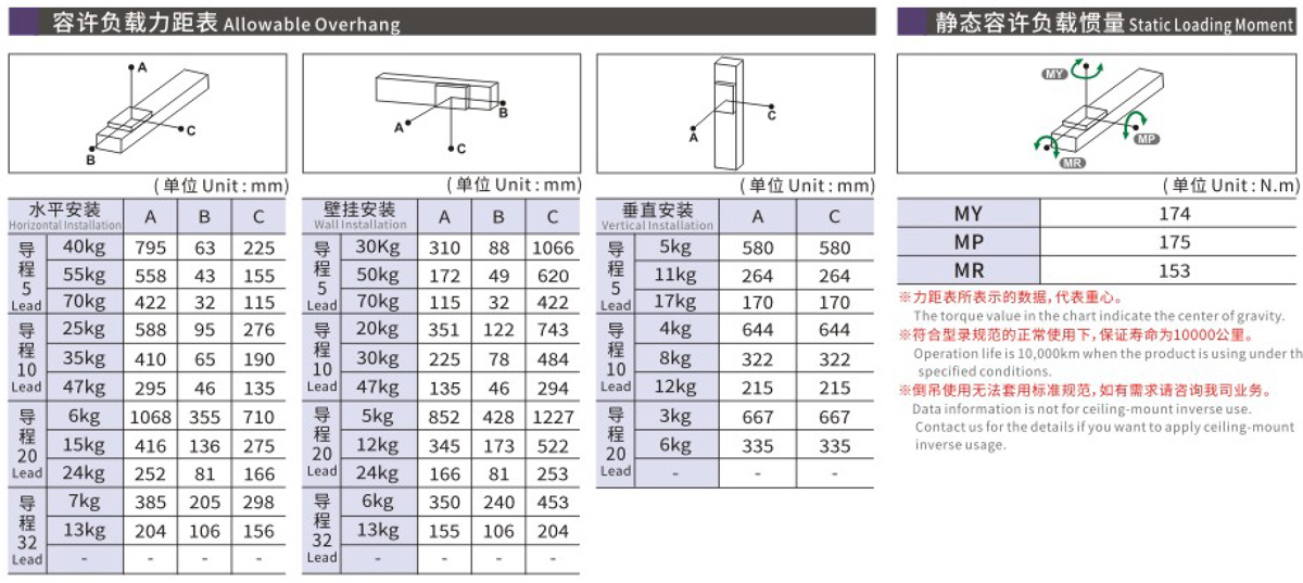容许负载力距表